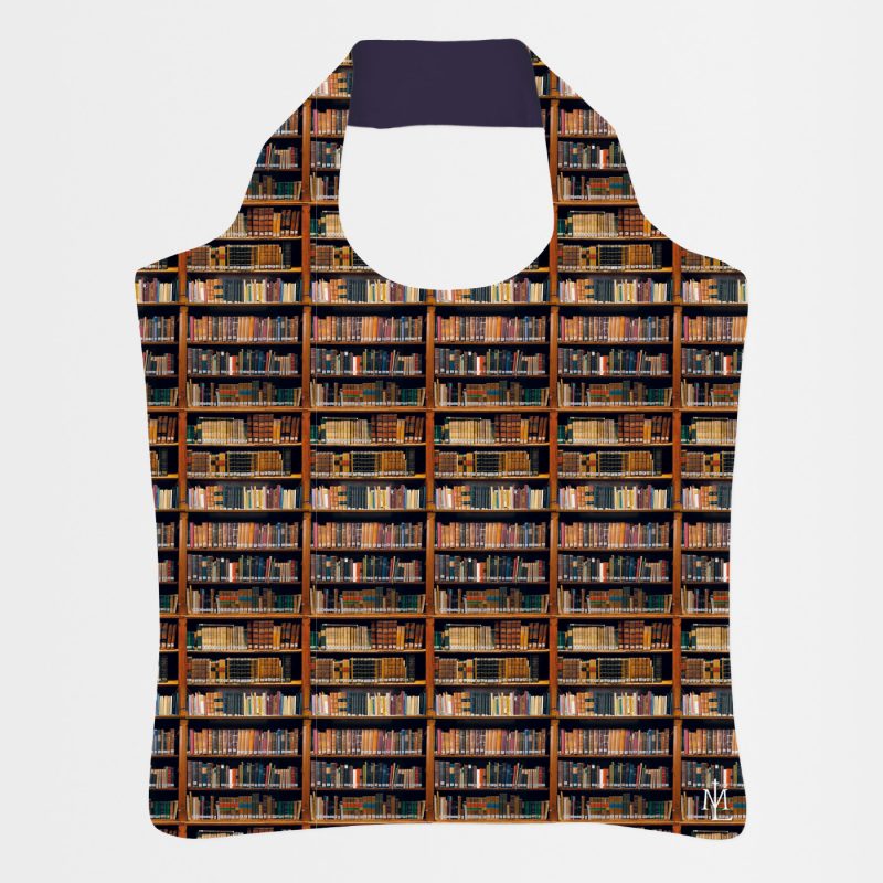 Diese Tasche ist außer hübsch auch praktisch. Sie kann klein zusammengefaltet werden und ist dadurch schnell verstaut und genauso schnell wieder griffbereit – ausgebreitet wird sie zur idealen Einkaufstasche, die bis zu 20 kg tragen kann. Im Inneren befindet sich ein kleines Aufbewahrungsfach, in dem z.B. ein Handy gut aufgehoben ist. Die Tasche ist wasserfest und verfügt über einen robusten Reißverschluss. Hergestellt wurde sie aus 100% recycelten Plastikflaschen. Dank des Motivs der Bücher der Klosterbibliothek ist sie ein toller Blickfang an jeder Schulter.