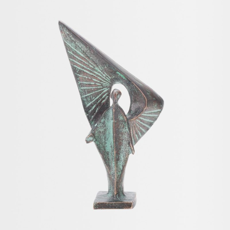 Dieser Engel misst 13 cm, wurde aus Bronze gefertigt und mit einer Patina veredelt.